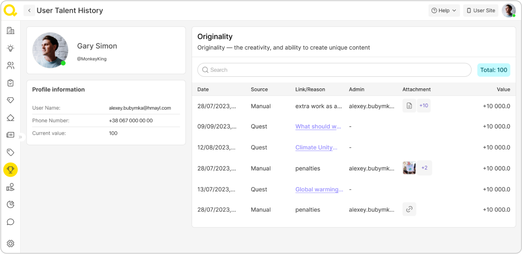 Vous pouvez modifier manuellement le nombre de points de talent qu'un volontaire reçoit pour une quête spécifique. L'une des raisons pourrait être, par exemple, si un bénévole a fait un travail supplémentaire dans le cadre de la réalisation d'une quête ou vraiment.