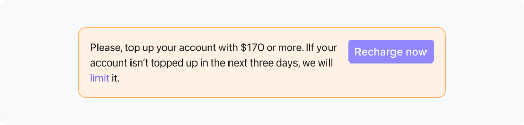 Si, pour une raison quelconque, le paiement n'a pas été effectué, nous en informons le client et lui accordons également une période de crédit de trois jours pour utiliser Qela. En même temps, la date du prochain paiement ne change pas.