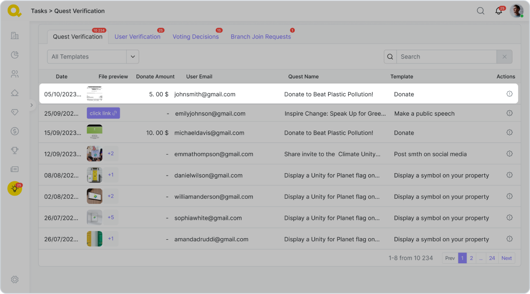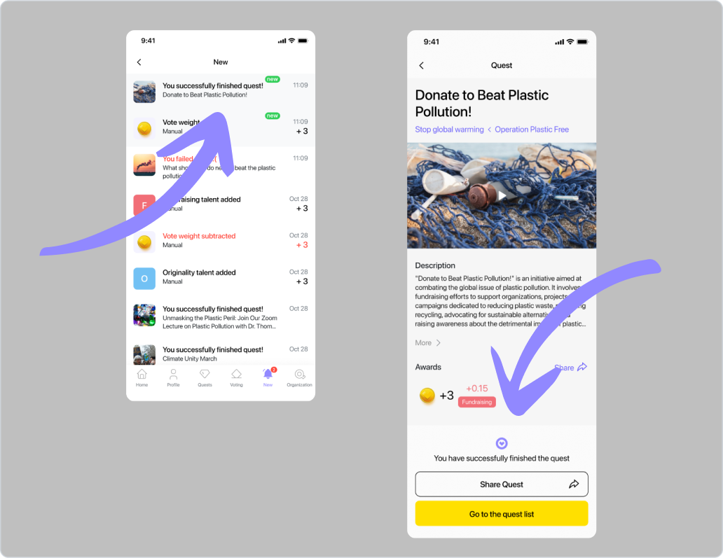 Pour cette quête, vous devrez fournir à vos participants un lien vers une source où ils pourront faire un don à votre organisation. Vous devrez ensuite vérifier une capture d’écran de ce don.