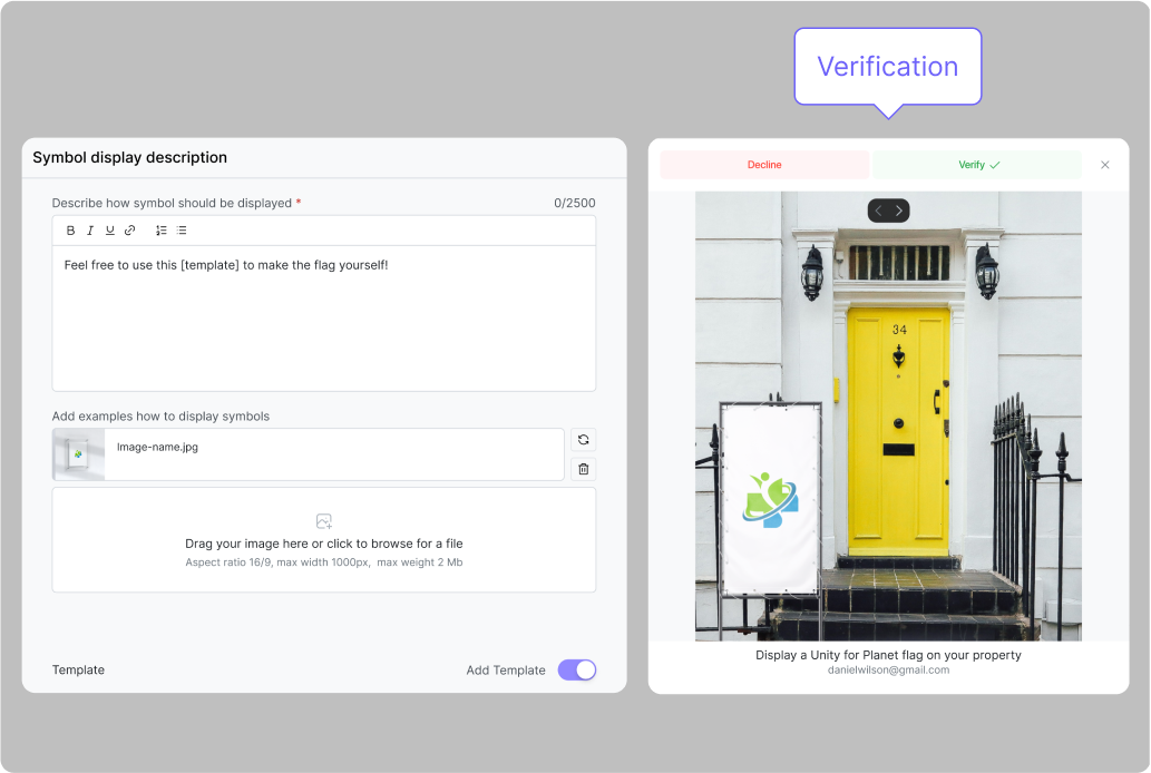 Afficher le symbole dans votre quartier ou sur votre propriété : pour cette quête, vous devez donner à vos bénévoles des instructions précises sur ce qui doit être affiché, où et comment. Les participants vous enverront ensuite des photos des symboles, que vos administrateurs devront vérifier.