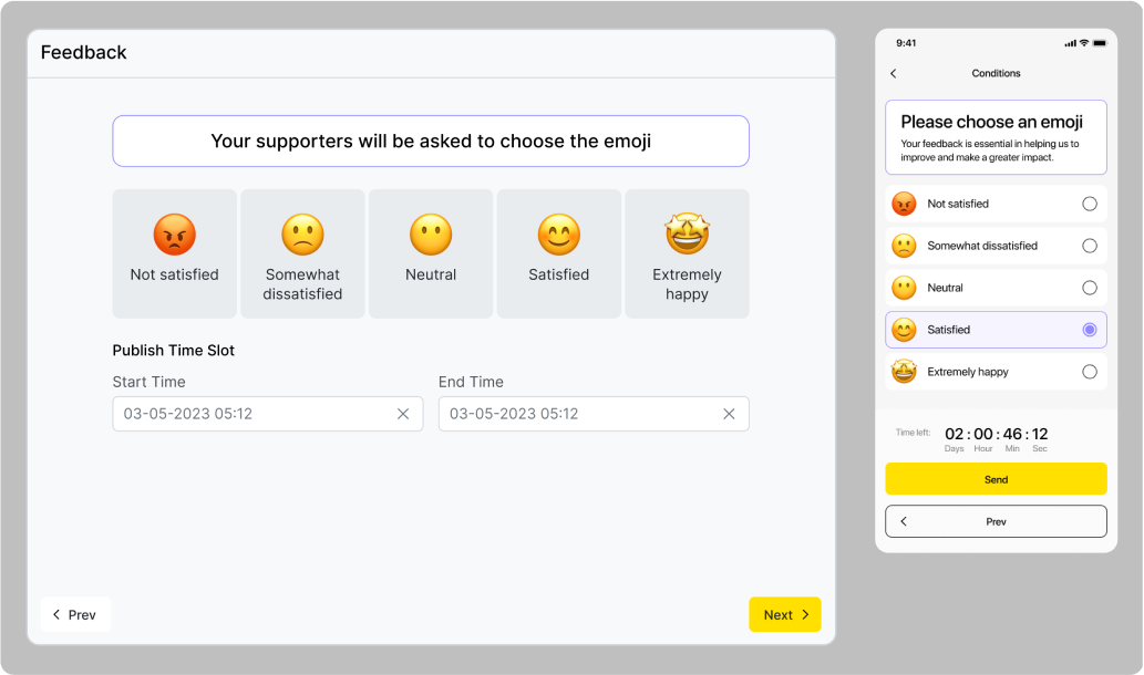 Dans cette quête, vous n'avez pas besoin d'ajouter de condition — vos participants vous enverront simplement un feedback basé sur des emojis automatiquement via Qela.
